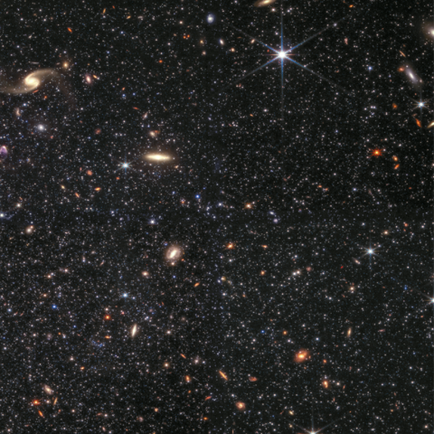 However, the resolution of James Webb is not comparable to that of the Spitzer Space Telescope because the primary mirror is much larger and the observed wavelength is shorter (generally shorter wavelengths and larger primary mirrors show good resolution). Observations with the Spitzer Space Telescope have completely resolved most unknown objects, revealing thousands of clearly distinguishable objects in a variety of colors, sizes, shapes, and brightnesses. Most celestial bodies appear dark orange, blue, and white, and these are the stars that make up the WLM galaxy.